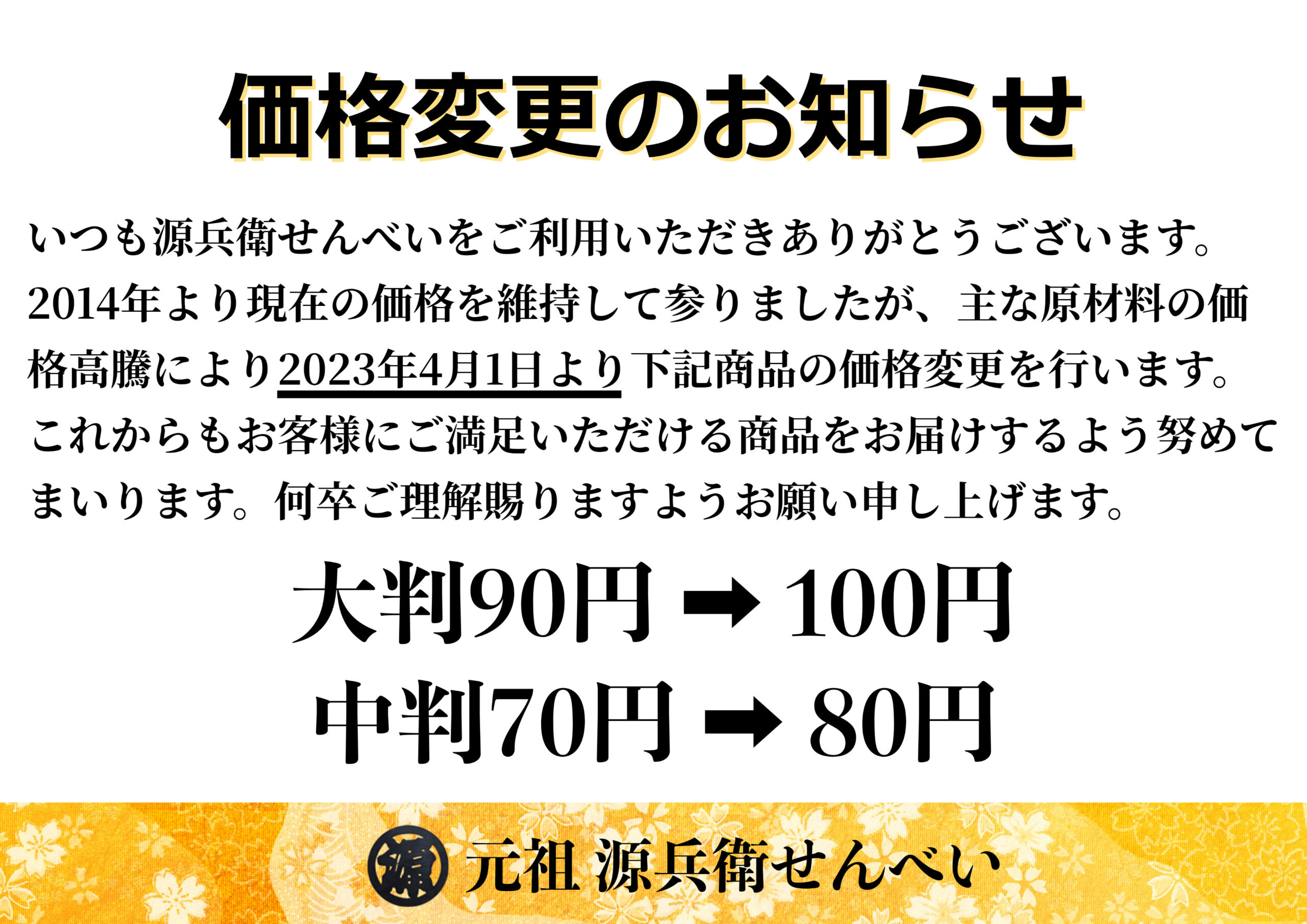 手焼きの醤油せんべいのみの価格変更となりますので、ご承知おきください。
